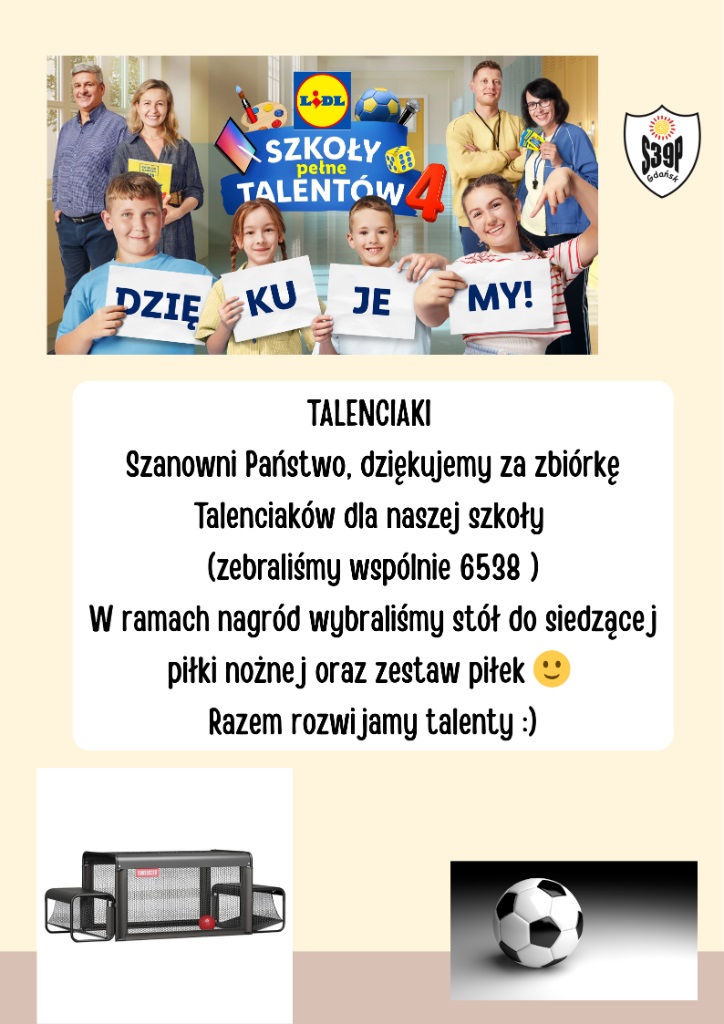Dziękujemy za Talenciaki! - Szkoła Podstawowa nr 39 im. Wojska Polskiego